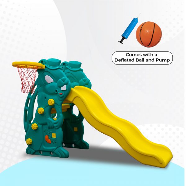 • INTRACTIVE : This colorful rabbit slide has wide base for stability, safe grip handles, and a basket ball ring on the side panels to keep your child entertained. Also, this is beneficial for strengthening physical and balance abilities.