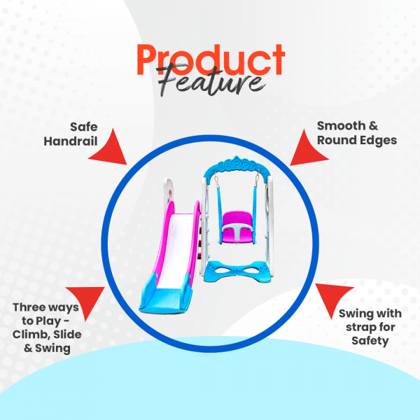 The OK PLAY 2-in-1 Swing & Slide Set is the perfect combination of fun and adventure for young children. Designed for both indoor and outdoor play, this versatile playset features a smooth, gentle slide and a secure swing with a safety belt, ensuring hours of safe and active entertainment. Made from high-quality, non-toxic, and durable plastic, it is built to withstand regular use while providing a sturdy and stable structure. The rounded edges and anti-skid design enhance safety, making it ideal for toddlers and young kids. With an easy, tool-free assembly, parents can set it up effortlessly in any playroom, backyard, or garden. This playset not only keeps children engaged but also helps in developing their motor skills, balance, and coordination, making it a wonderful way to encourage active and imaginative play. Perfect for kids aged 2 years and above, the OK PLAY 2-in-1 Swing & Slide Set is a great addition to any home, ensuring joyful and healthy playtime.