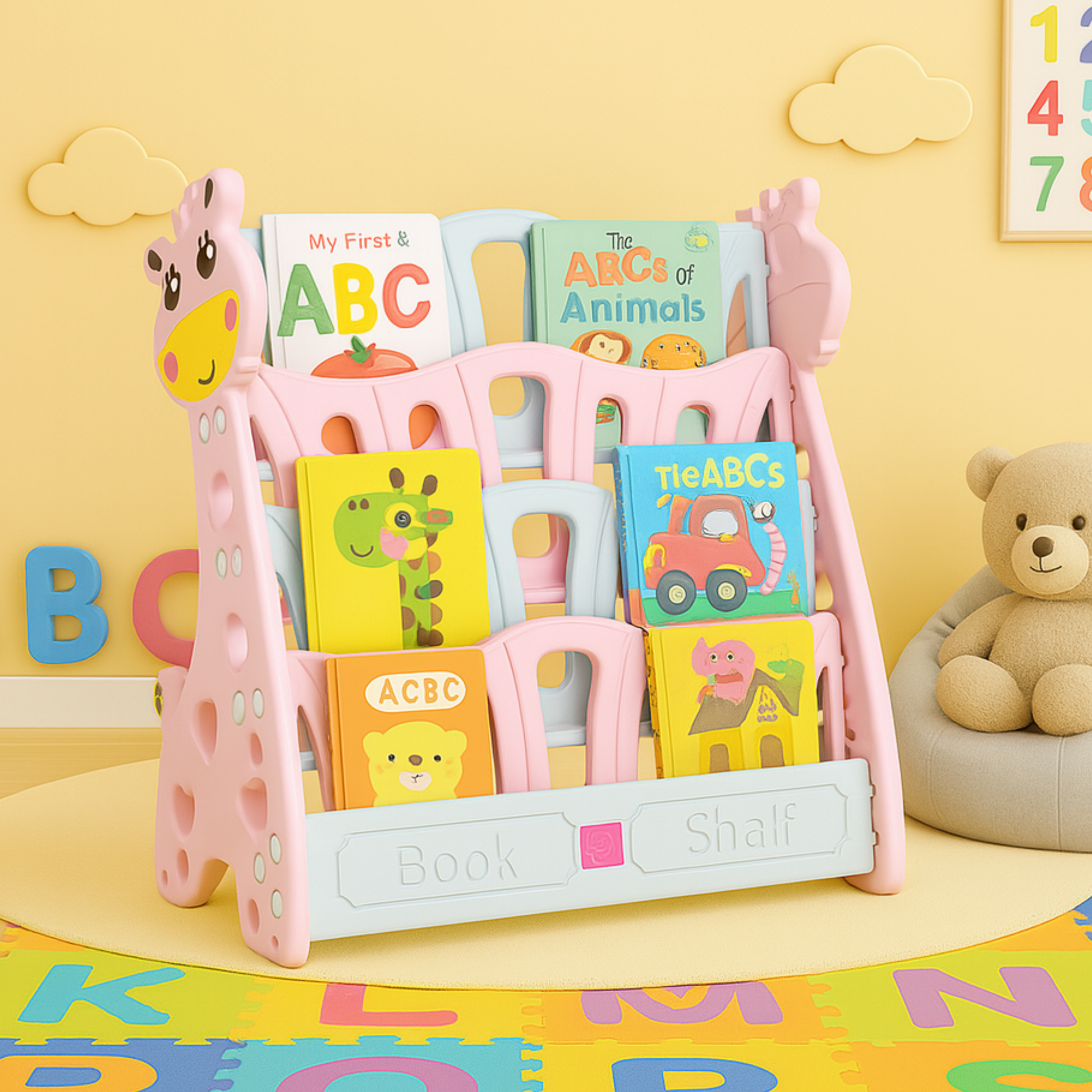 The OK PLAY 4-Tier Animal-Themed Bookshelf is a fun and functional storage solution, perfect for organizing books, toys, and essentials in a child-friendly way. Designed with a vibrant animal theme, it adds a playful touch to any nursery, playroom, or classroom. The four spacious tiers ensure easy access to books while promoting independent learning and organization. Made from durable, child-safe, and weather-resistant plastic, this bookshelf is built to last. It is lightweight, easy to assemble, and comes with a detailed instruction manual for a hassle-free setup. Create an engaging and tidy space for your little one with this charming and sturdy bookshelf.