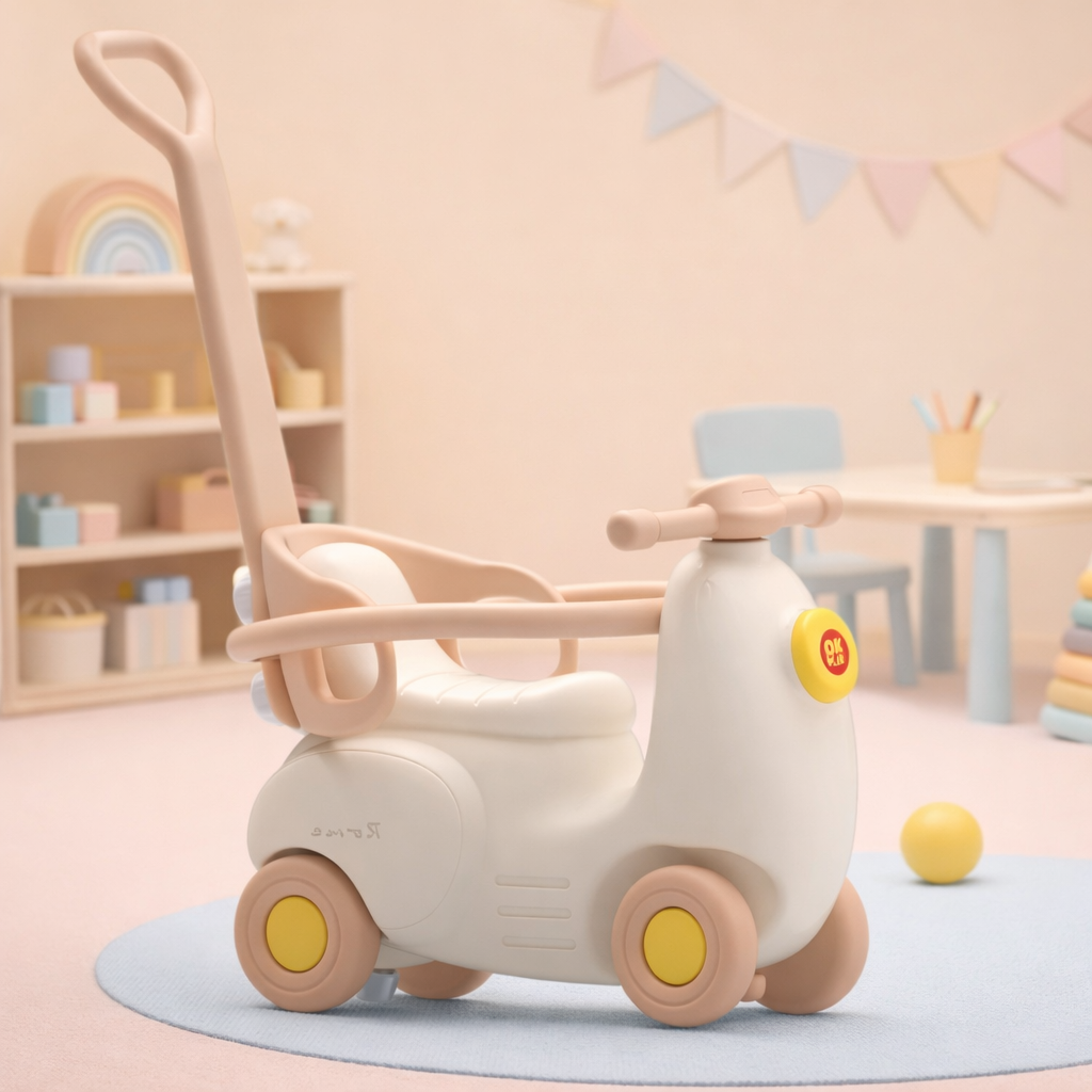 Designed to support early physical development, the OK Play Classic Scooter Ride-On helps strengthen leg muscles while improving balance and coordination. With a wide base, stable wheels, comfortable seating height, and easy-grip handlebars, it delivers a secure and enjoyable riding experience—making it an ideal choice for homes, play areas, and preschools.