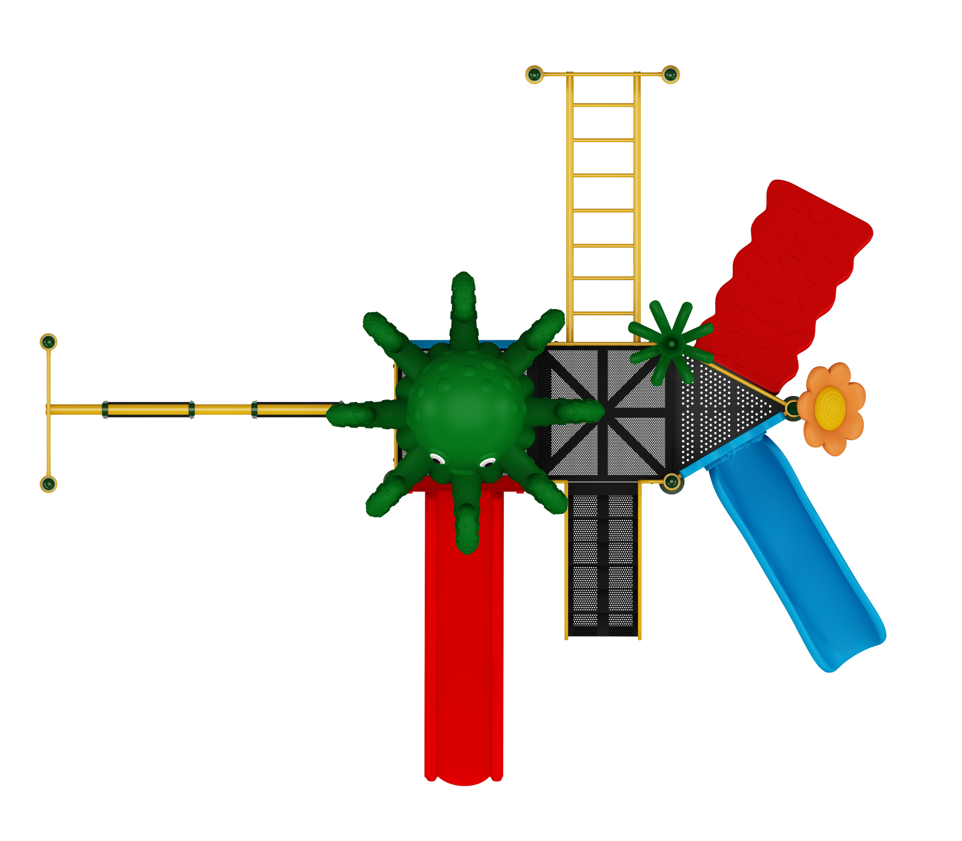The structural components are manufactured using high-quality rotomolded LLDPE plastic. All parts are UV-resistant, anti-static and offer a high level of light fastness, ensuring long-lasting color stability and performance in outdoor environments. Produced using a double-wall construction technique, the components maintain a consistent thickness ranging from 4 to 6 mm, delivering enhanced strength, durability, and safety for prolonged use.