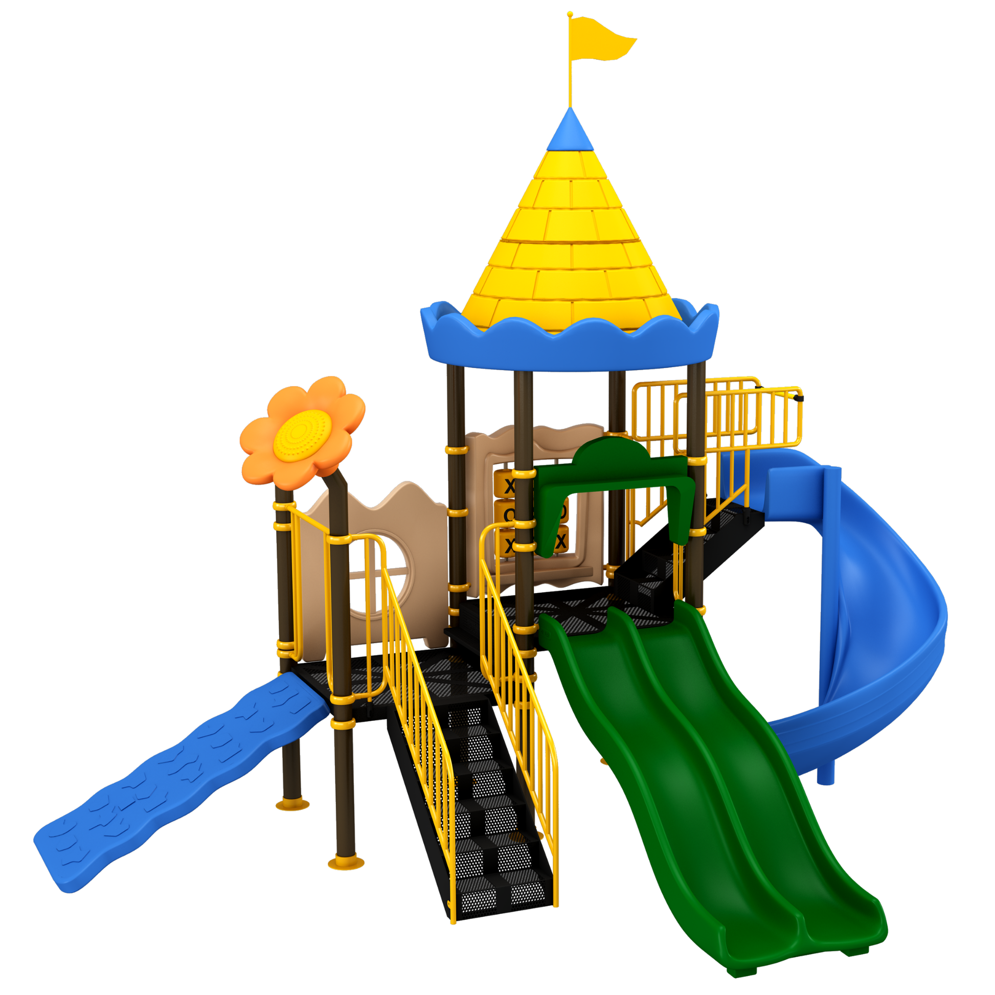 The Castle Series is offered across multiple product variants, each featuring a distinctive combination of play elements. Depending on the model, structures may incorporate slides, climbers, crawl tunnels, interactive panels, bridges, guardrail platforms, and elevated play decks. This modular approach allows planners and designers to select playground equipment that aligns seamlessly with space availability, age-group needs, and desired play value, while maintaining a cohesive and recognisable castle-themed aesthetic.
