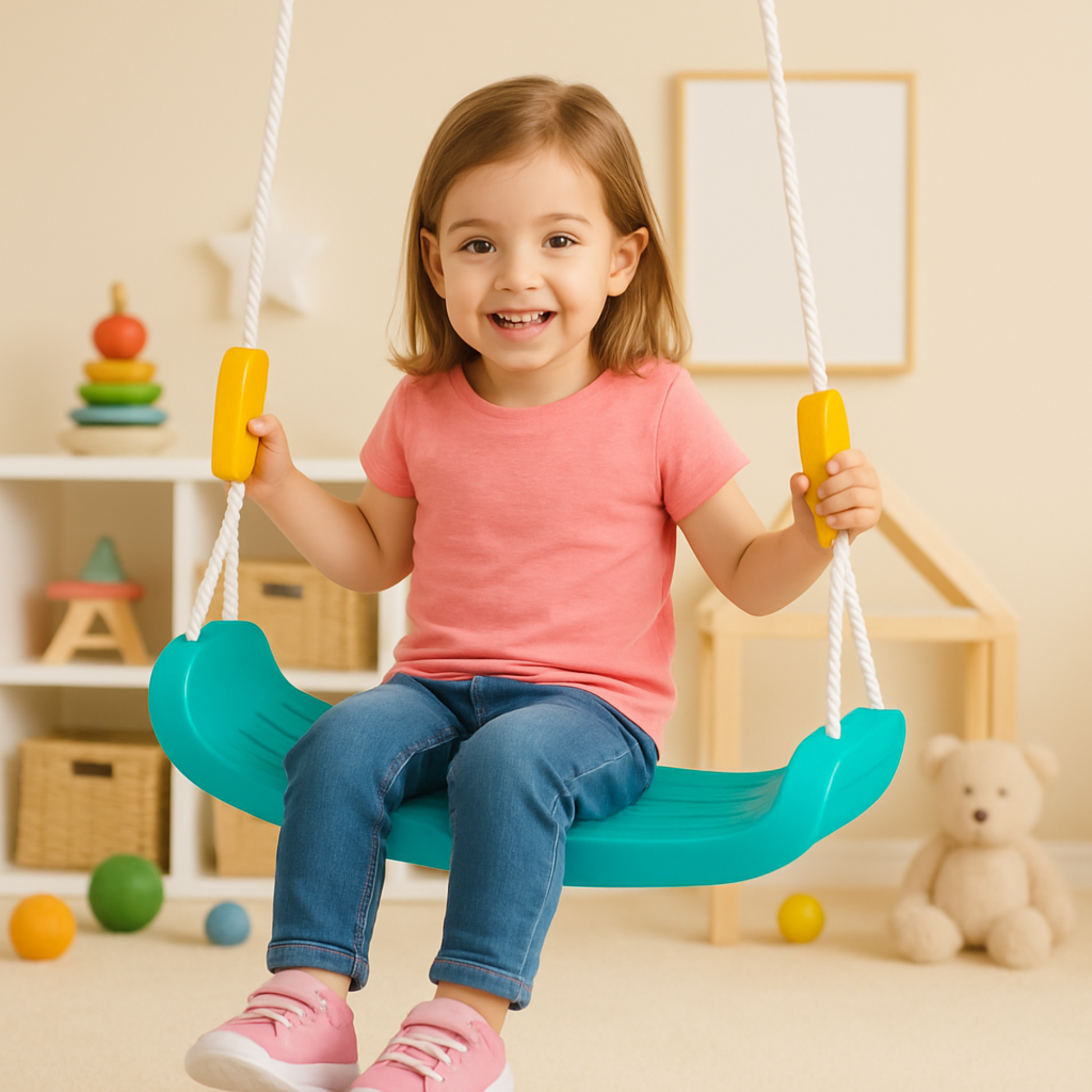 The OK Play Fun Flier Swing is the perfect addition to your child’s playtime, bringing endless fun, excitement, and developmental benefits. Designed for kids aged 2 years and above, this sturdy and durable swing is made from high-quality, weather-resistant plastic, ensuring long-lasting use both indoors and outdoors. The ergonomic, non-slip seat provides extra comfort and safety, while the adjustable rope makes it easy to customize the height to suit different spaces like gardens, balconies, or playrooms.Its lightweight yet strong construction allows for easy portability, so you can move it effortlessly as needed. Plus, the swing is easy to assemble, requiring minimal effort to set up, making it a hassle-free choice for parents. Beyond just fun, this swing encourages active play, helping to improve balance, coordination, and gross motor skills in growing children. Whether used solo or as part of a larger play area, the OK Play Fun Flier Swing guarantees hours of joyful and energetic play.