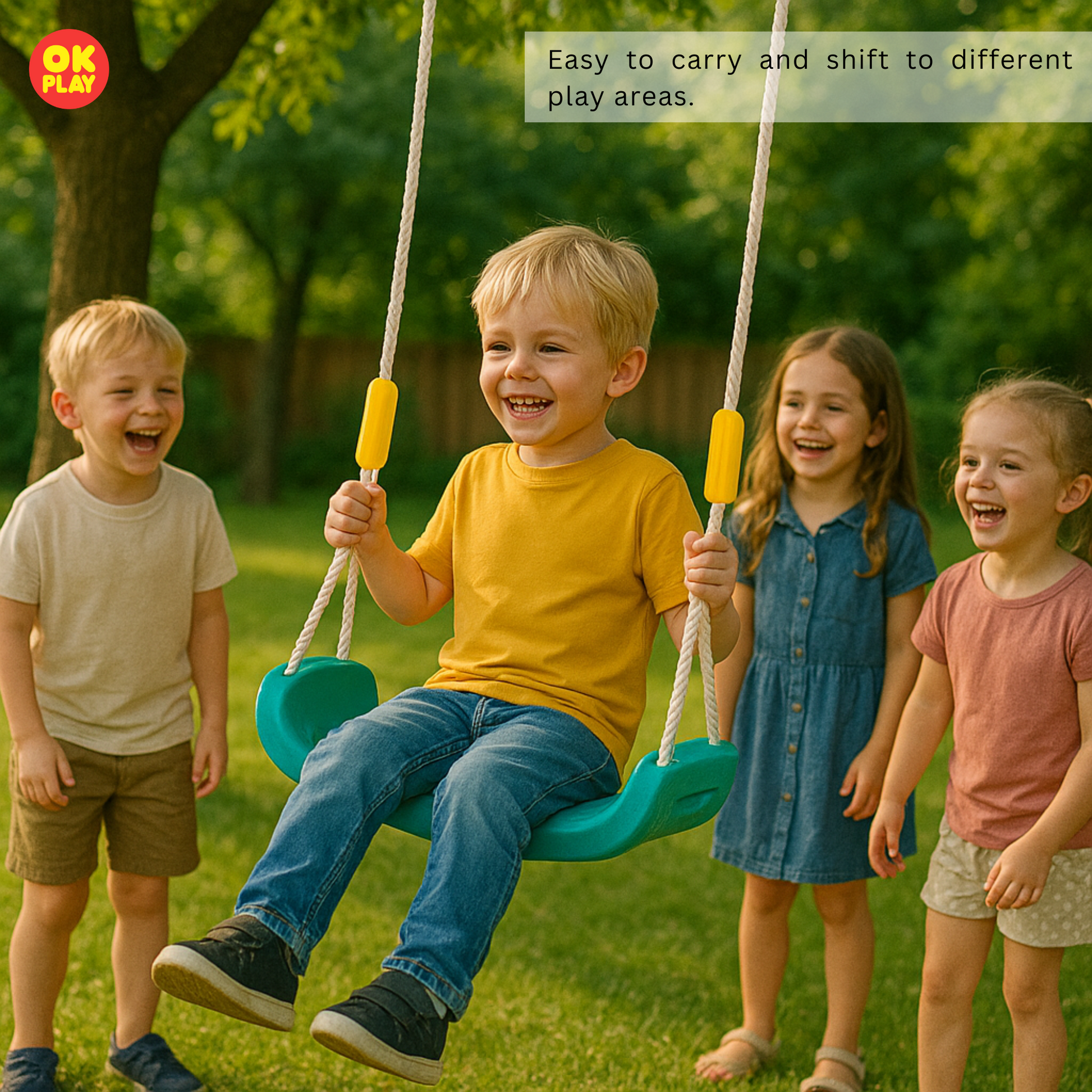 OK PLAY Fun Flier | Swing For Kid | Adjustable Rope |Safe & Secure | Indoor & Outdoor Play | Comfort Seating | Tree Swing for Playground | Portable | Easy Storage | Perfect Gift