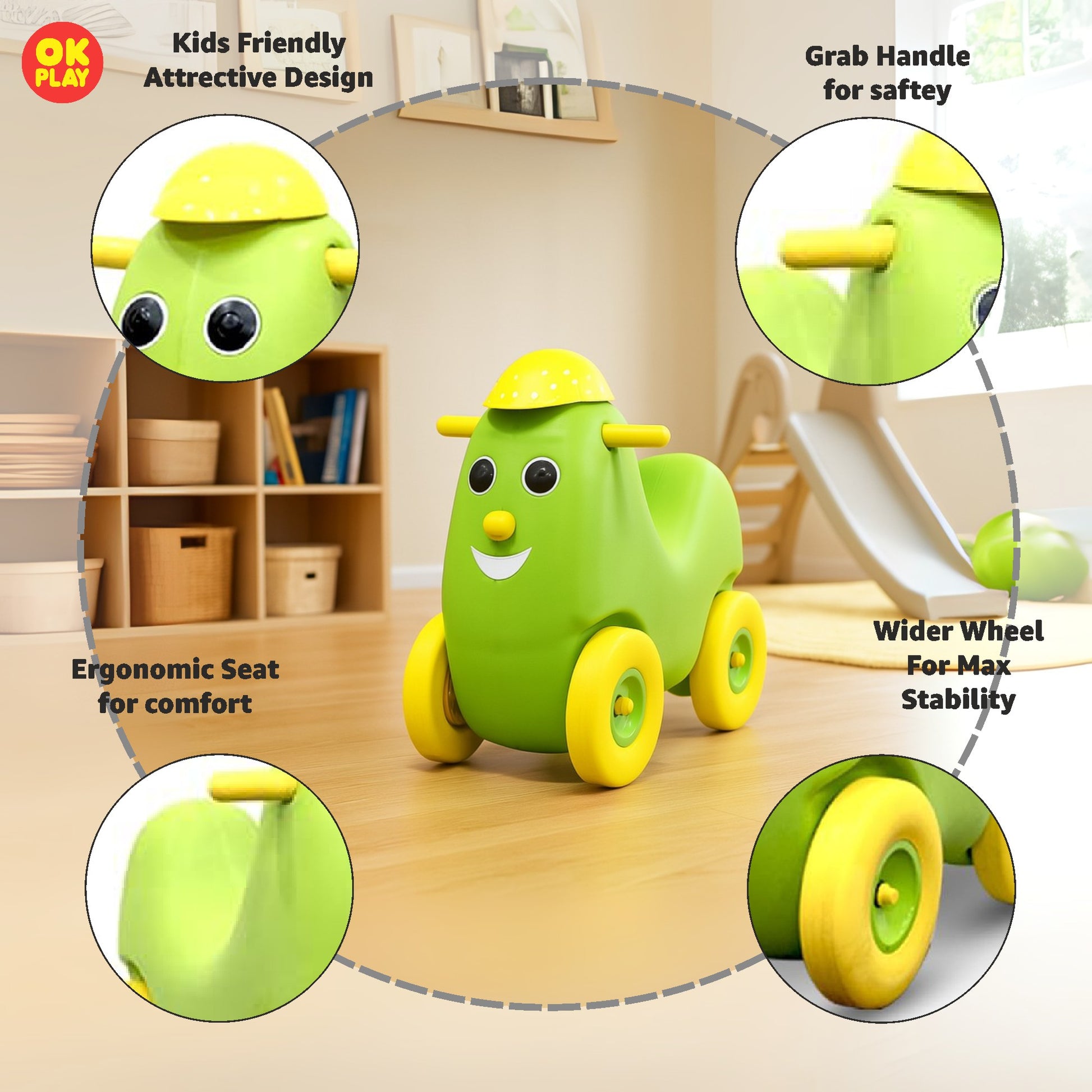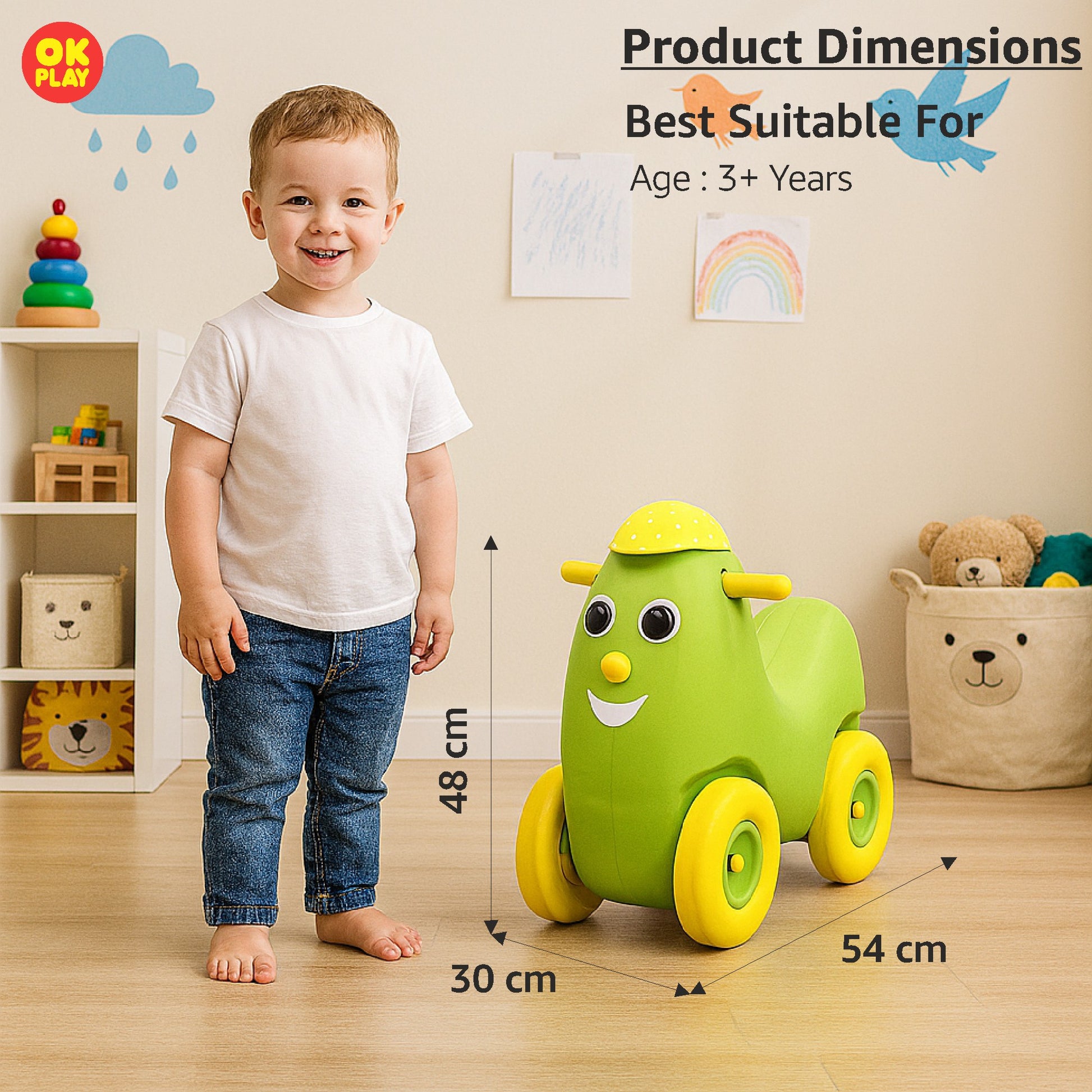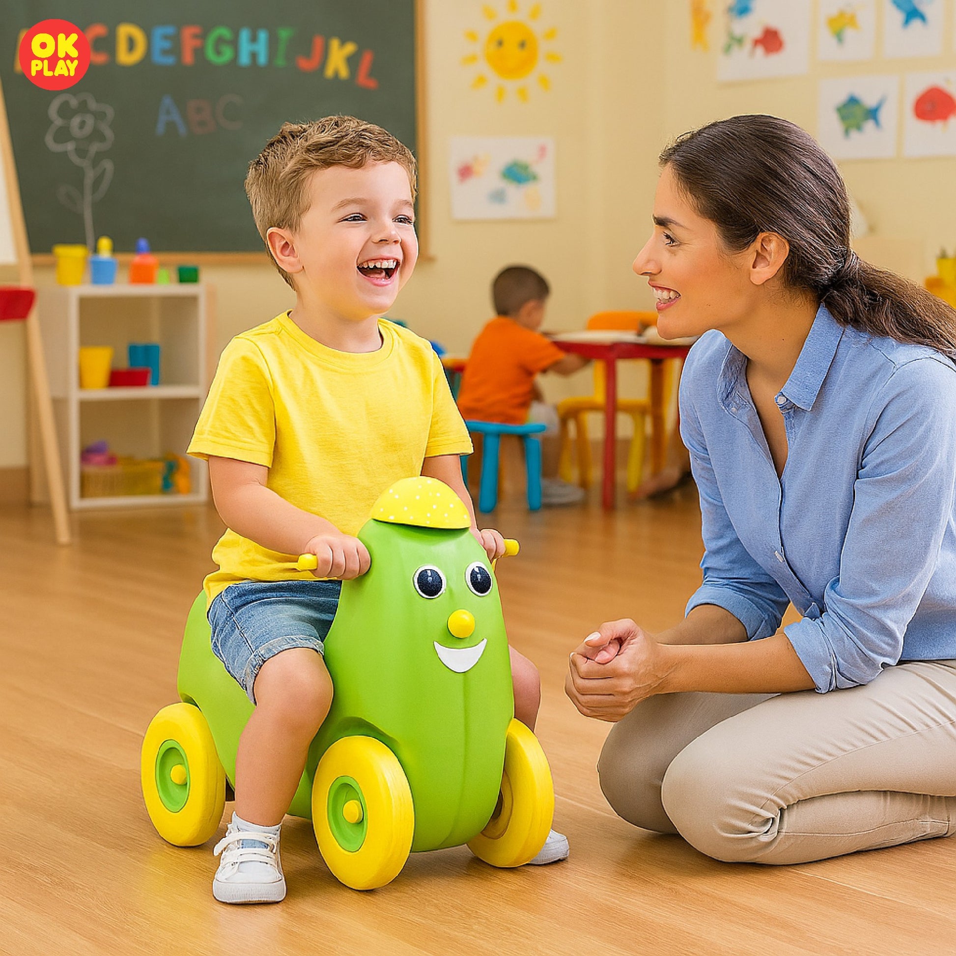 The OK Play Humpty Dumpty Ride-On is a fun and engaging push-and-ride toy designed to enhance a child's motor skills, balance, and coordination. Crafted from high-quality, non-toxic, and durable plastic, this ride-on is built to withstand hours of play while ensuring maximum safety for young riders.Shaped like the beloved nursery rhyme character Humpty Dumpty, this ride-on features an ergonomic design with a wide and sturdy seat, allowing toddlers to enjoy a comfortable ride. The easy-grip handlebars and smooth-rolling wheels enable effortless movement, helping children develop confidence in mobility.Designed for kids aged 1.5 years and above, the Humpty Dumpty Ride-On is lightweight yet stable, making it ideal for both indoor and outdoor play. Its bright and cheerful color combination adds to its appeal, making it a delightful companion for your child’s playtime adventures.Encouraging active play and independent movement, the OK Play Humpty Dumpty Ride-On is perfect for toddlers who are learning to push, balance, and ride while having endless fun.