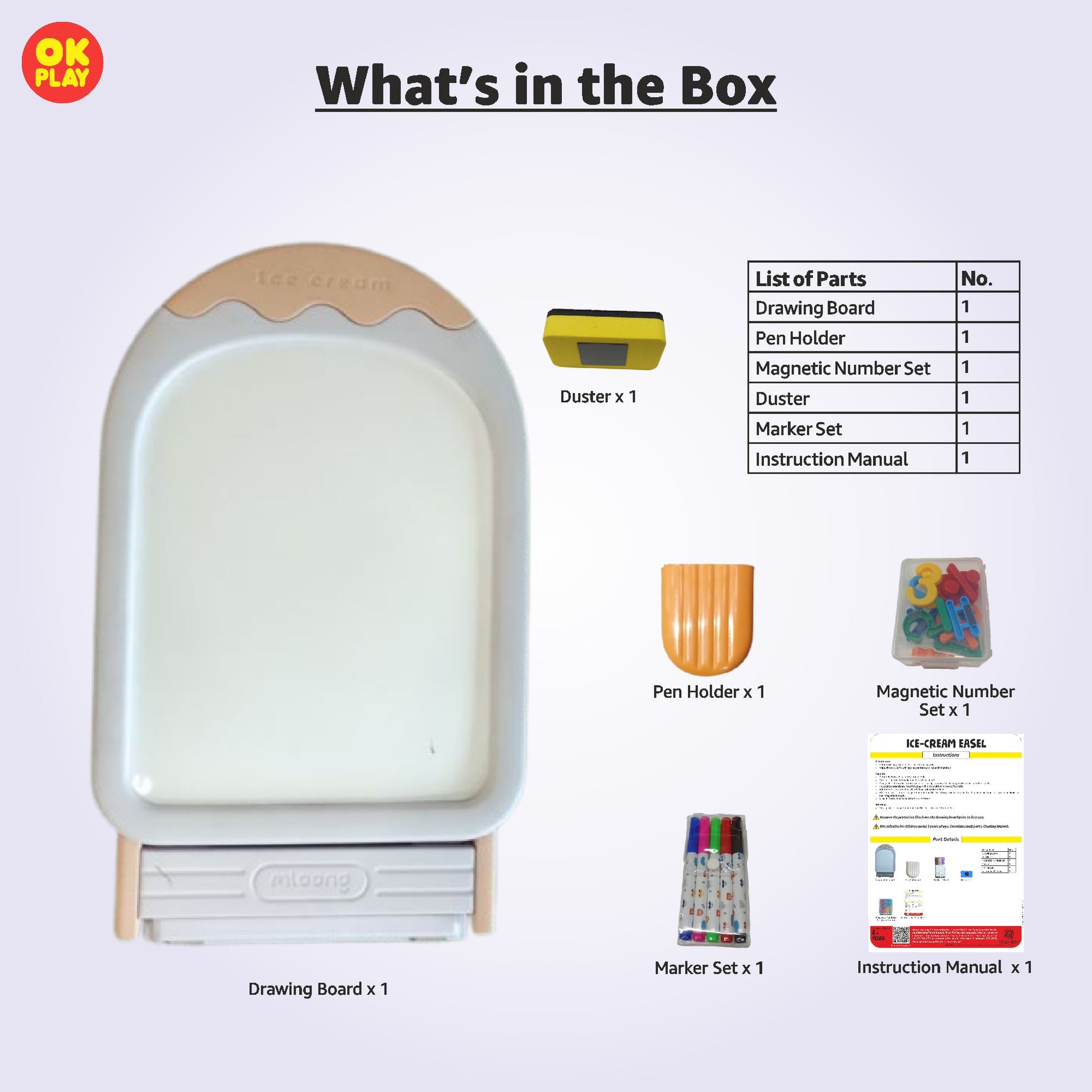 The Ice Cream Easel from OK Play India is designed to provide a reliable and engaging display solution for ice cream treats. Its sturdy construction ensures durability during daily use, while the ergonomic design enables easy access and presentation. Ideal for retail or event settings, this easel helps showcase your offerings effectively, enhancing customer interaction and boosting sales.