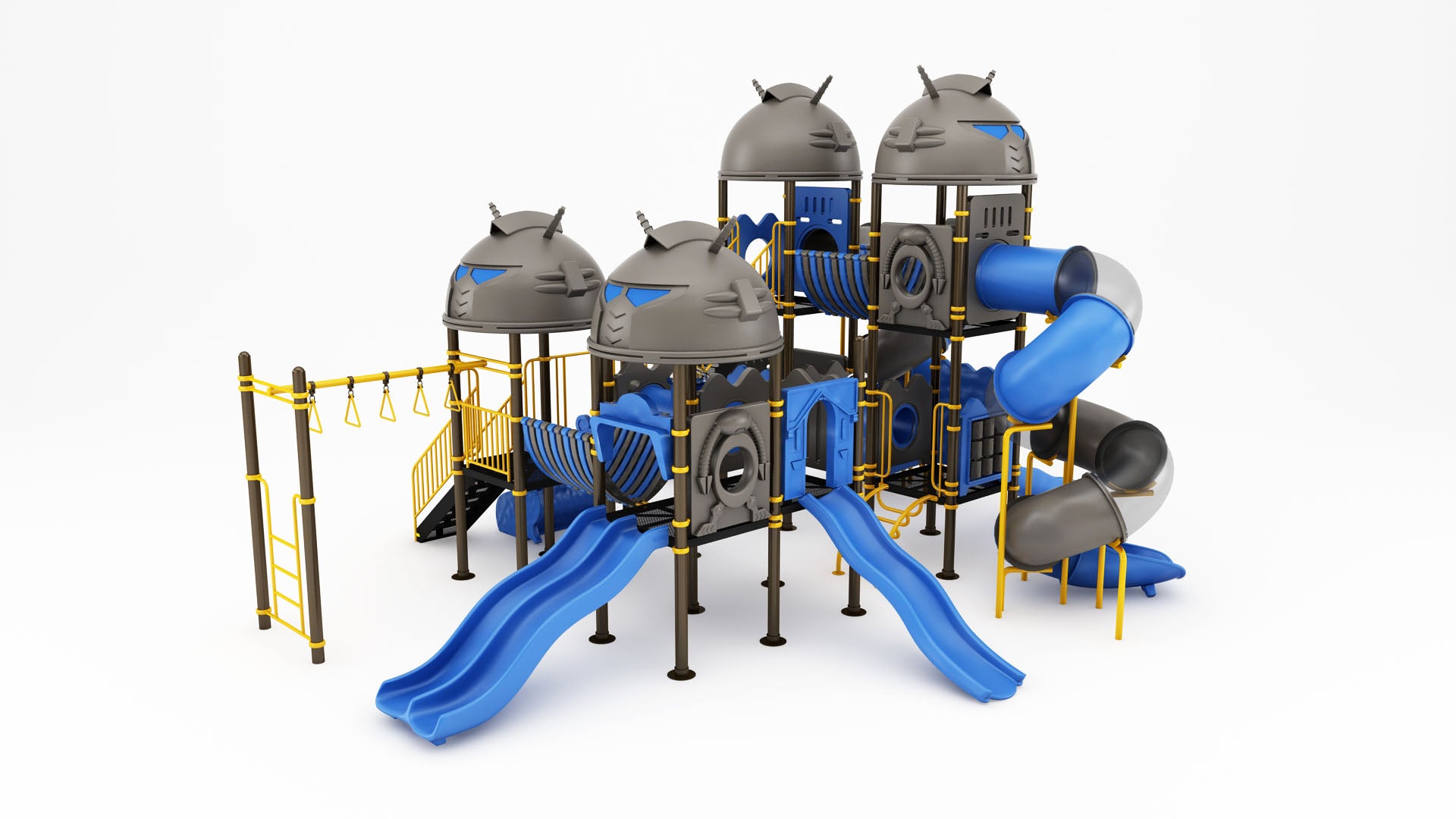 The Robot Series is available across multiple product variants, each thoughtfully configured with a distinct mix of play elements. Depending on the model, structures may feature slides, climbers, spider railings, interactive panels, and elevated play platforms. This modular design approach allows flexibility in selecting playground equipment that aligns with site planning, age-group needs, and desired play value, while maintaining a cohesive and visually engaging robot-inspired theme.