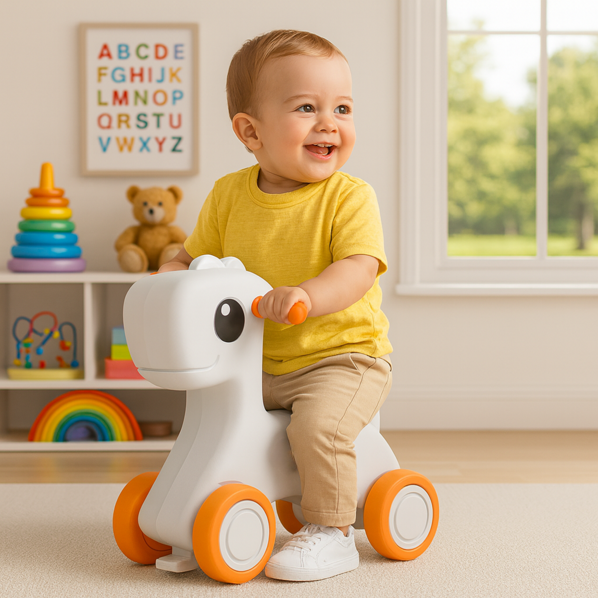 Suitable for Ages 1.5 Years & Above – The OK Play Pony Ride is a delightful ride-on toy designed to provide endless joy and developmental benefits for toddlers. Shaped like a friendly pony, this ride-on encourages independent movement, coordination, and balance, making it perfect for growing kids.Crafted from high-quality, non-toxic, and durable plastic, the Pony Ride is lightweight yet sturdy, ensuring a safe and smooth riding experience. The ergonomic seat and easy-grip handles provide extra stability, while the wide, balanced base ensures added security to prevent tipping.With its bright, attractive colors and smooth, child-friendly edges, this pony-shaped ride-on is ideal for both indoor and outdoor play. Whether zooming around the house or taking a ride in the backyard, children will love the sense of adventure and freedom it offers.Easy to assemble, clean, and carry, the OK Play Pony Ride is a fantastic choice for active toddlers, promoting physical activity, confidence, and imaginative play!