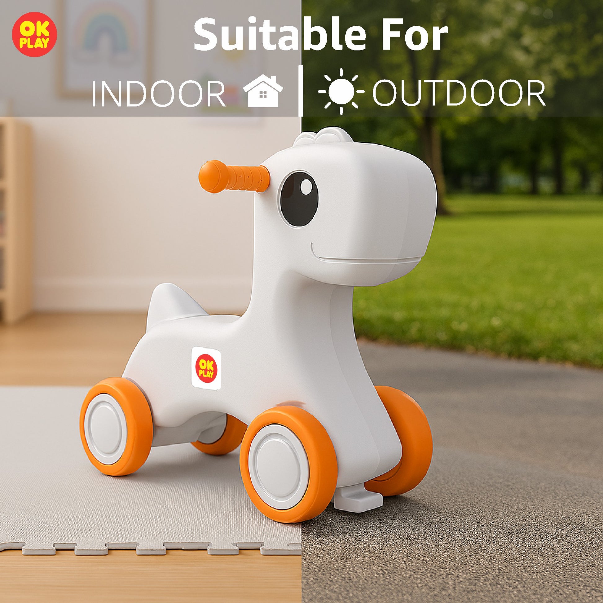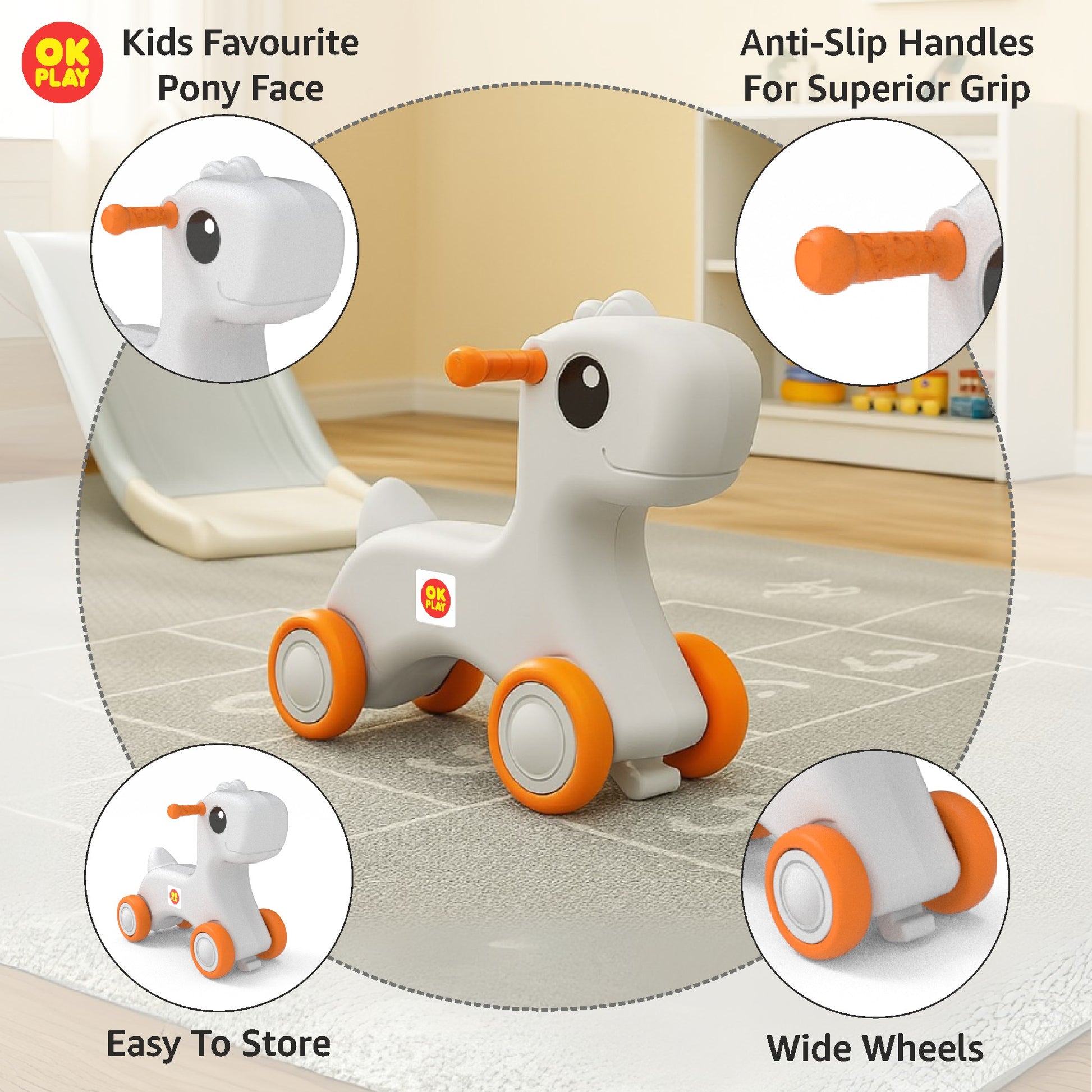 OK PLAY Pony Ride On Push On for Kids | Backrest | Easy Grip | Anti Skid | Four Wheel Ride | Indoor & Outdoor Ride On | Light-Weight | Durable | Portable | Perfect Gift | Animal Theme