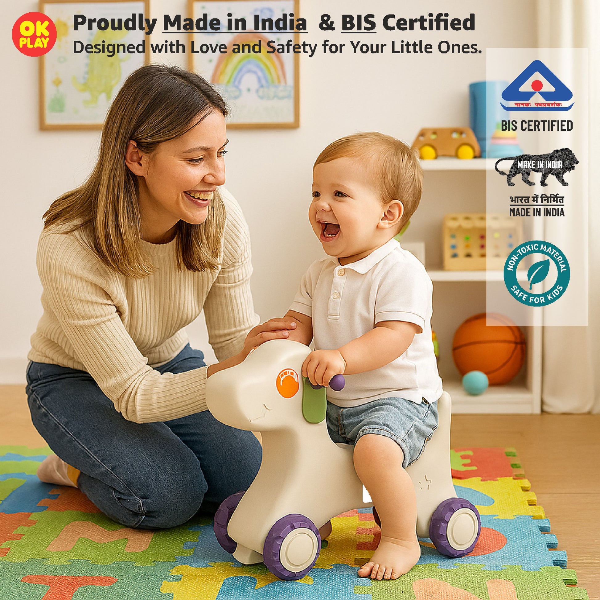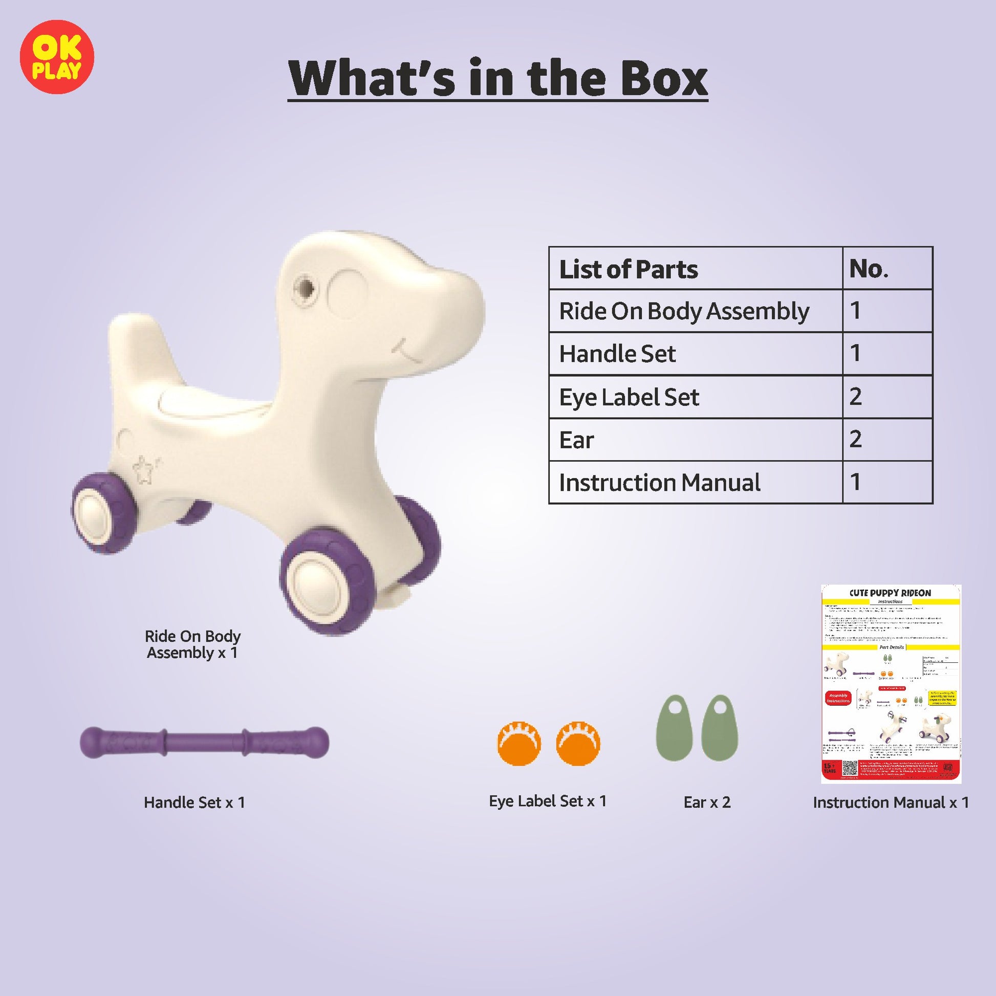 OK PLAY Puppy Ride On Push On for Kids | Backrest | Easy Grip | Anti Skid | Four Wheel Ride | Indoor & Outdoor Ride On | Light-Weight | Durable | Portable | Perfect Gift | Animal Theme