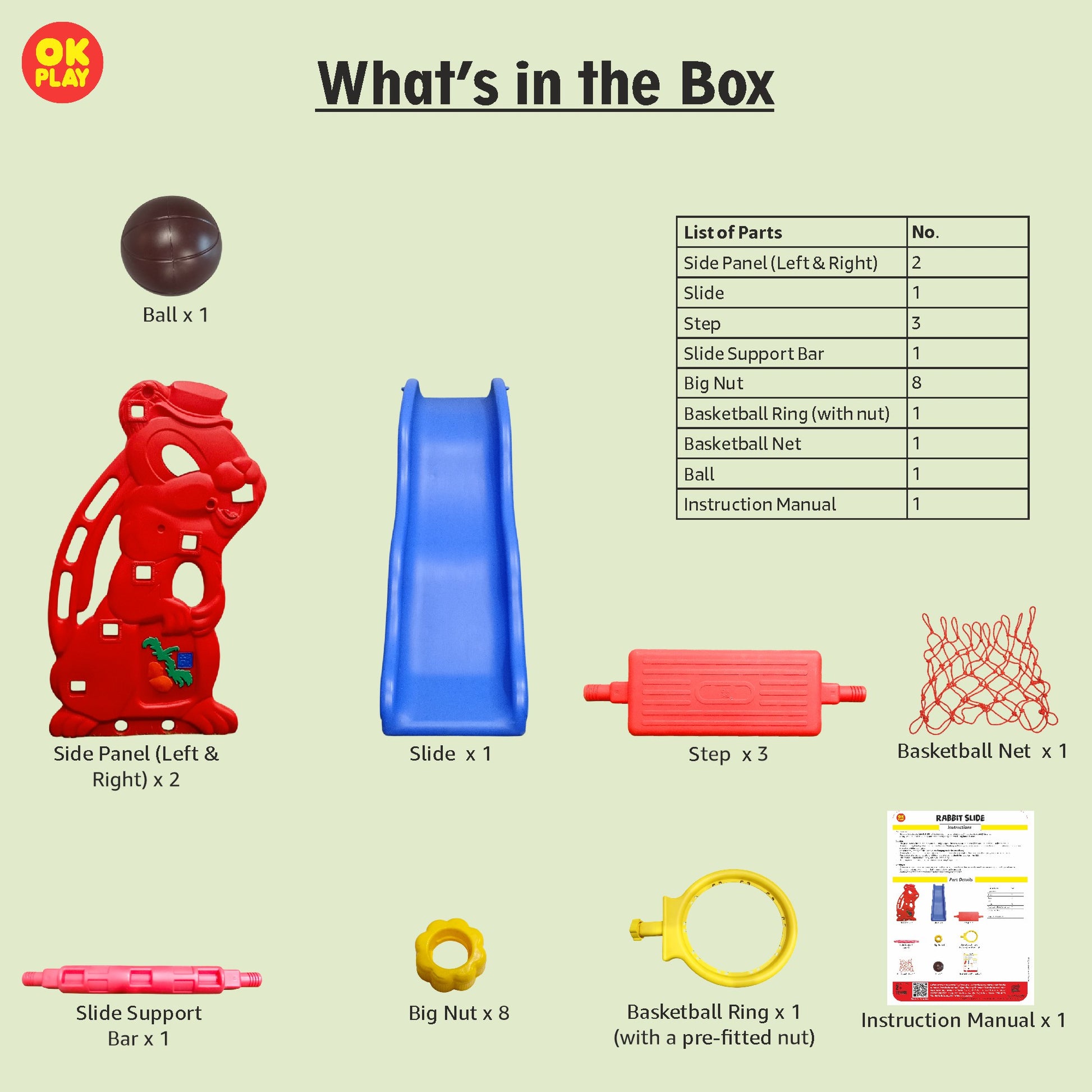 OK PLAY Rabbit Slide with Basketball Ring | Indoor & Outdoor Play | Perfect Slide for Home, School & Playground | Easy Assembly | Safe & Fun Activity Toy | Perfect Gift for Boys & Girls | Animal Theme