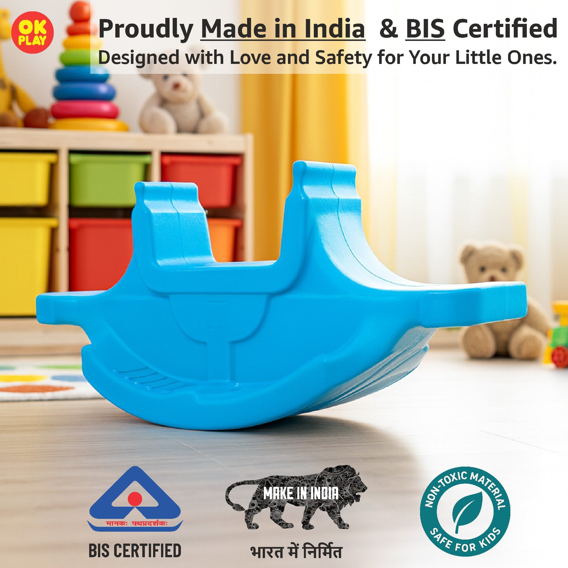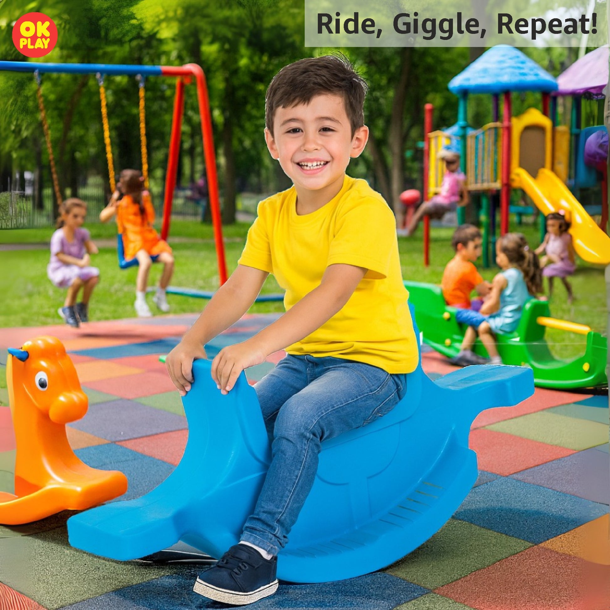 The OK Play Medium Rocker is a sturdy and ergonomically designed ride-on toy that provides endless fun and developmental benefits for toddlers and young children. Made from high-quality, non-toxic, and child-safe plastic, this rocker ensures durability, stability, and complete safety during playtime.Designed with a comfortable contoured seat and easy-grip handles, it allows children to rock back and forth securely while improving their balance, coordination, and motor skills. The wide base and anti-skid design provide extra stability, making it safe for both indoor and outdoor use.With its vibrant colors and engaging design, the OK Play Medium Rocker encourages active play and physical development, making it a great addition to homes, preschools, and daycare centers. Suitable for kids aged 1.5 years and above, this rocker promises hours of joyful and safe rocking fun!