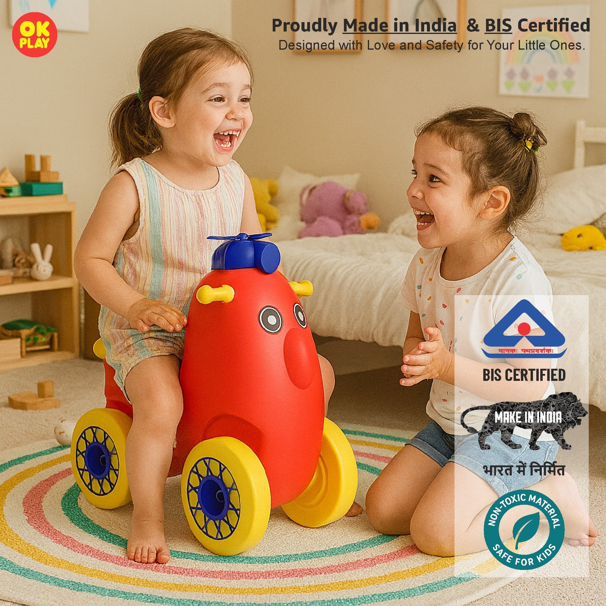 OK PLAY toys are perfect for both indoor and outdoor play, offering kids a safe, durable, and engaging play experience in any environment. Made from high-quality, non-toxic, and weather-resistant plastic, these toys are designed to withstand rough outdoor use while remaining lightweight and portable, making them easy to move and set up anywhere. Their sturdy yet lightweight construction ensures children can enjoy them in a playroom, backyard, garden, park, or school playground without hassle.