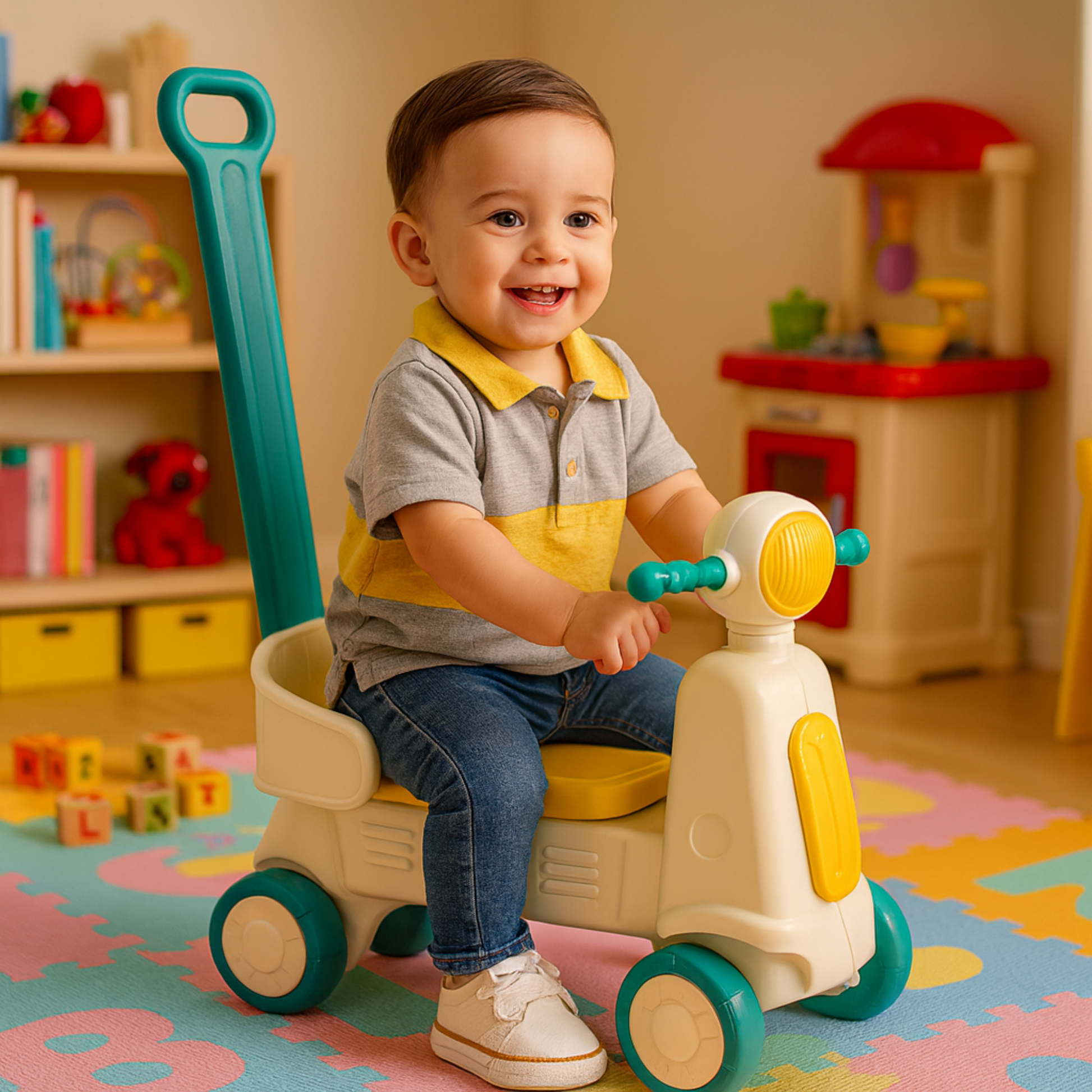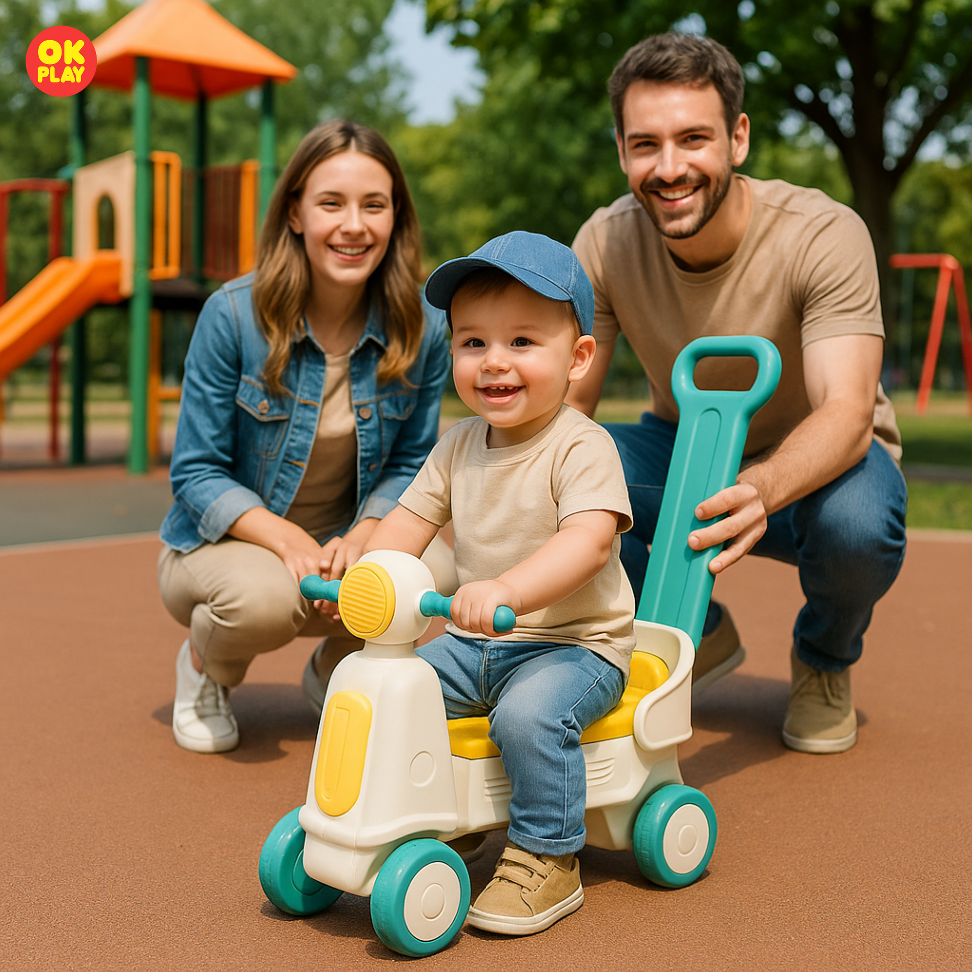 Suitable for Ages 2 Years & Above – The OK Play Scooter Ride-On is a fun and dynamic toy designed to get your little one moving with joy and confidence. With its sleek scooter-inspired design and easy-to-use structure, this ride-on encourages kids to scoot around independently, helping build balance, coordination, and gross motor skills from an early age.Crafted from high-quality, non-toxic, and durable plastic, the Scooter Ride-On is built to withstand hours of active play. It features a wide seat, easy-grip handlebars, and smooth-rolling wheels that ensure a safe and stable ride. The lightweight design makes it easy for kids to maneuver and parents to carry or store.With its vibrant colors and playful look, the scooter captures your child’s imagination while promoting physical activity and exploration. Perfect for indoor or outdoor play, it’s an ideal companion for everyday adventures.Let your child zoom into a world of fun with the OK Play Scooter Ride-On – where every ride is a step towards confidence and development!
