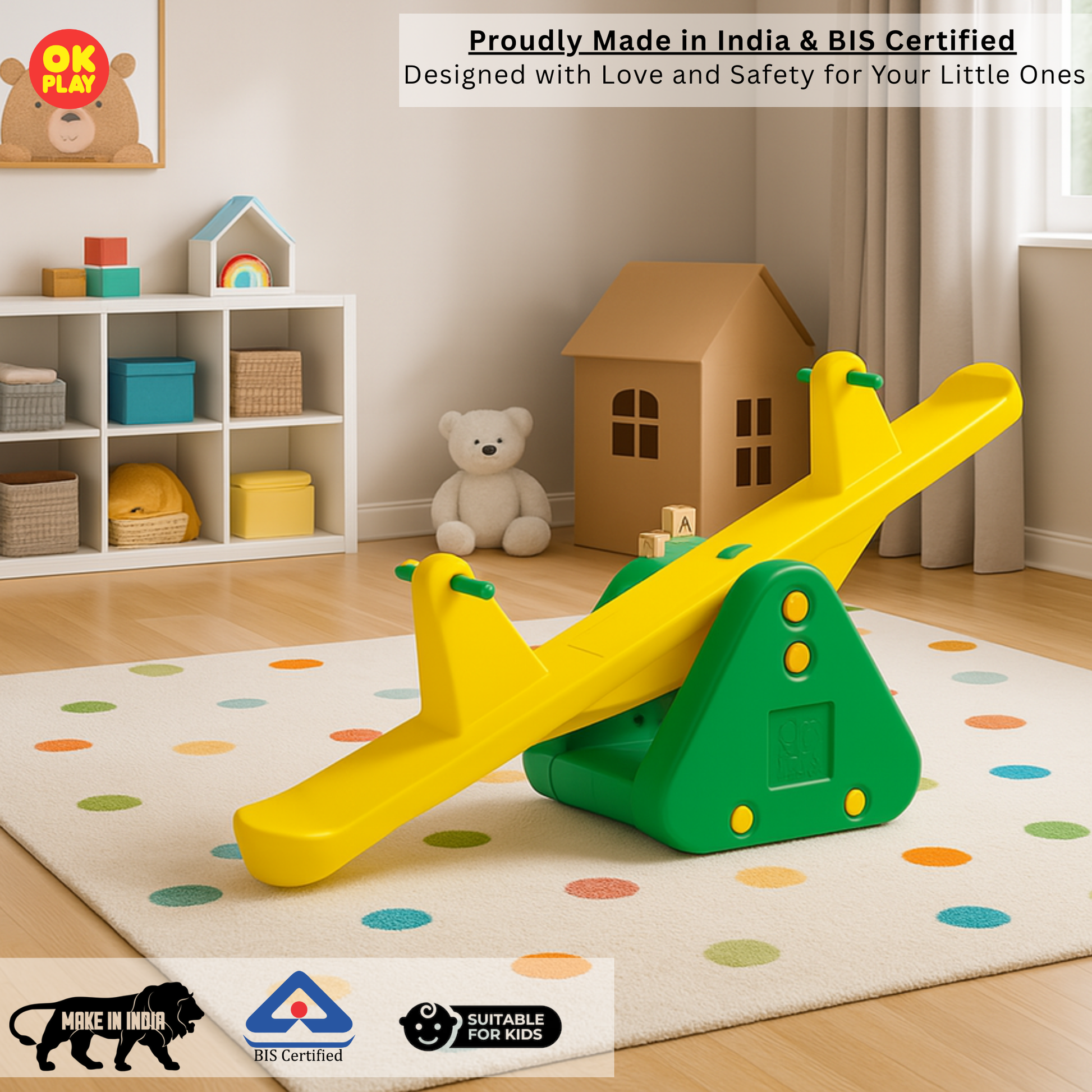 OK PLAY See Saw | Indoor & Outdoor Play | Anti skid Bottom | Easy Grip | Comfort Seat | Rounded Edges | Perfect Gift | Large