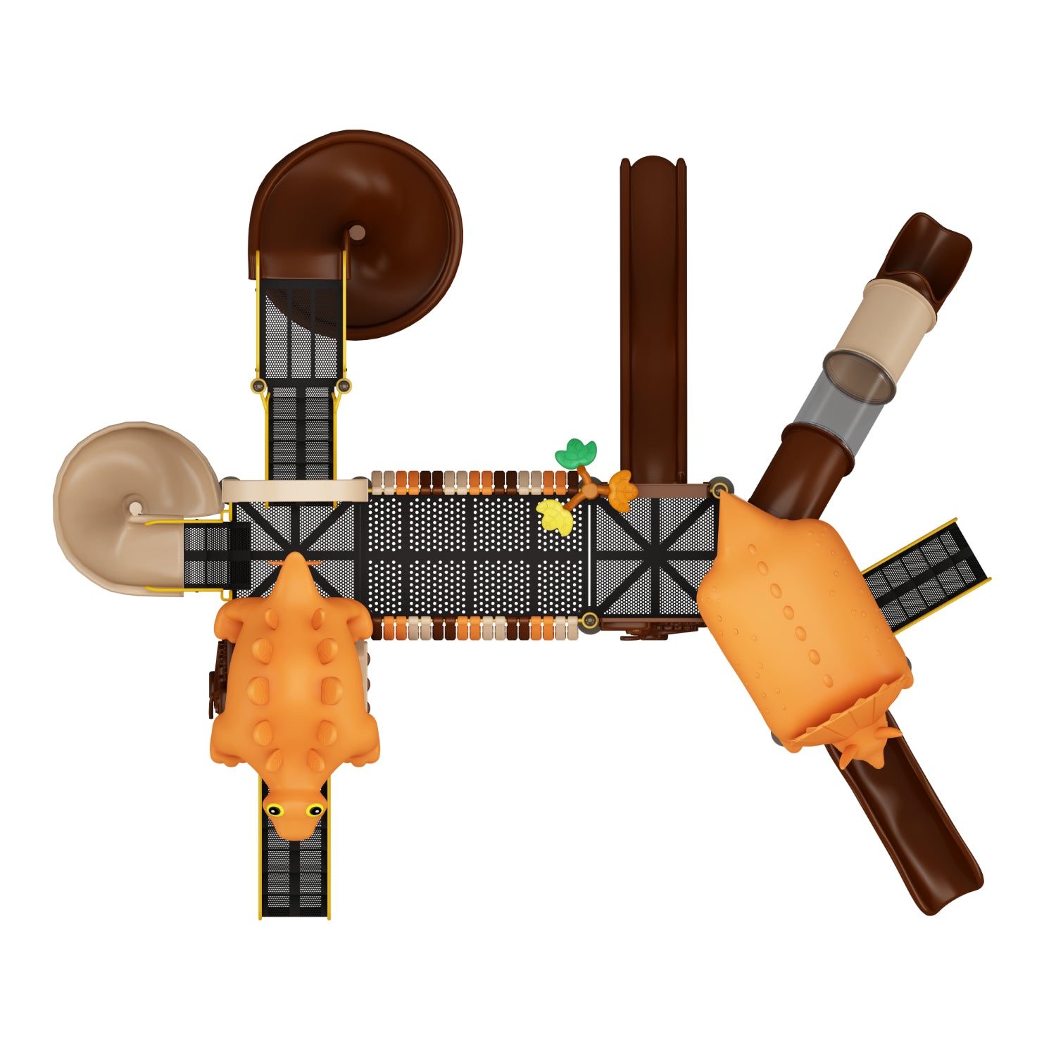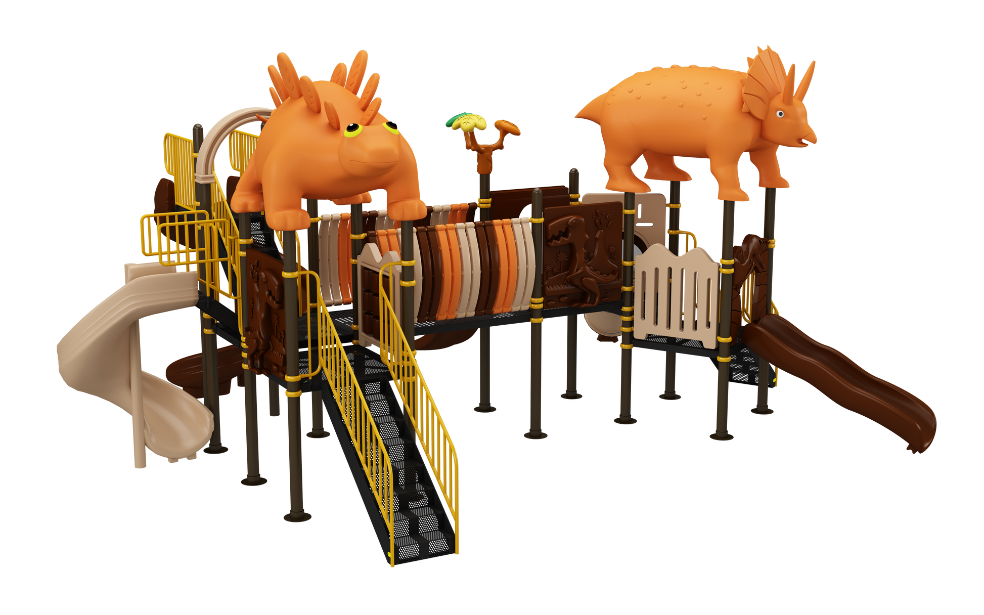 The Dinosaur Series is available in multiple variants, including Rox, Archie, Cirano, Raptar, Theco, Todd, Brute, Critter, Beast, Barney, Bonehead, Slego, Tricero, Arlo, and Craig. Each variant offers a unique configuration with different combinations of play elements such as slides, climbers, bridges, platforms, and interactive panels. Some models focus on a single play feature, while others integrate multiple elements, allowing flexibility based on space, age group, and play intensity requirements.