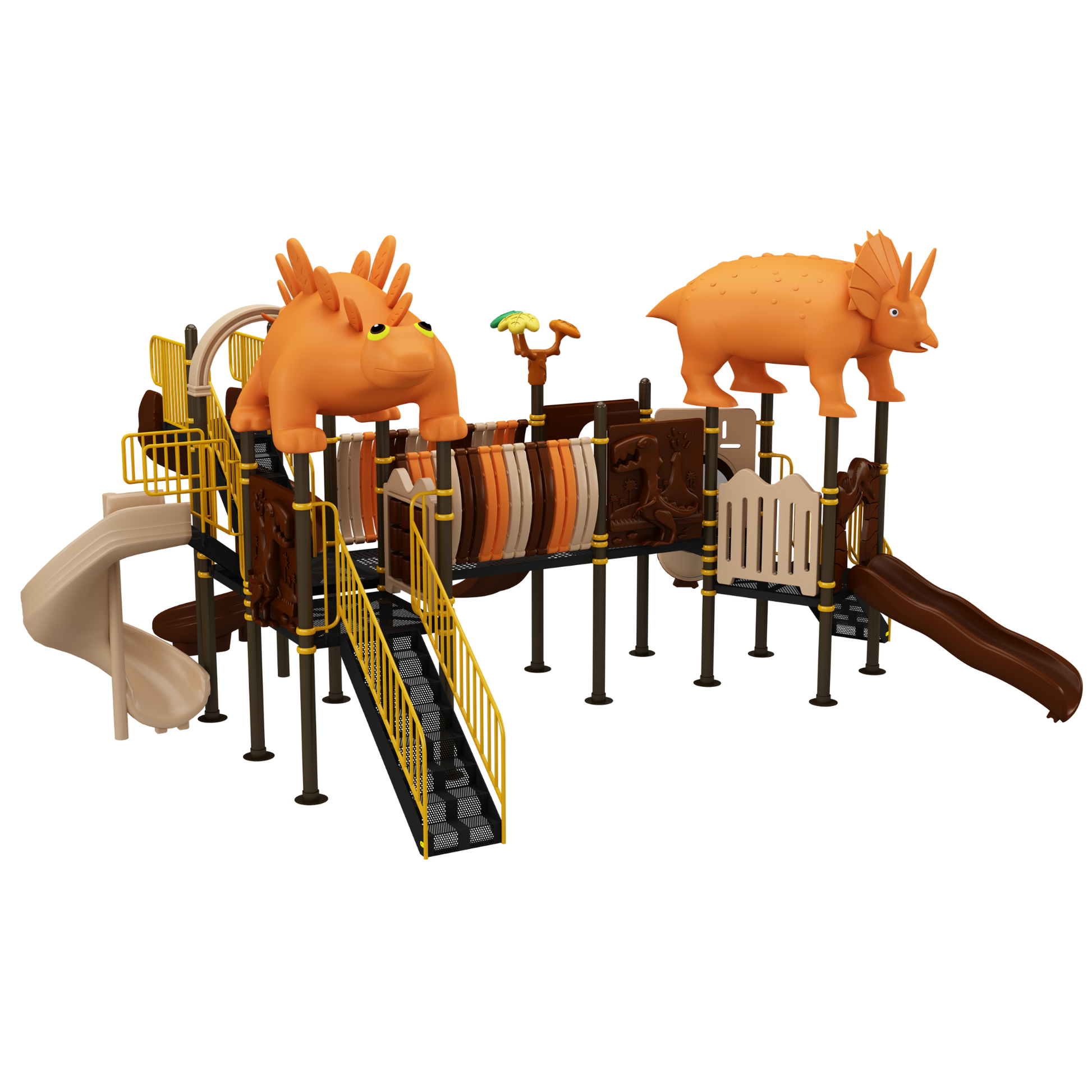 The Dinosaur Series is available across multiple thoughtfully designed variants, including Rox, Archie, Cirano, Raptar, Theco, Todd, Brute, Critter, Beast, Barney, Bonehead, Slego, Tricero, Arlo, and Craig. Each variant offers a distinct configuration with carefully selected play elements such as slides, climbers, bridges, platforms, and interactive panels. Some models focus on a single core activity, while others combine multiple play features, allowing flexibility to suit different space layouts, age groups, and play intensity requirements within modern playground equipment installations.
