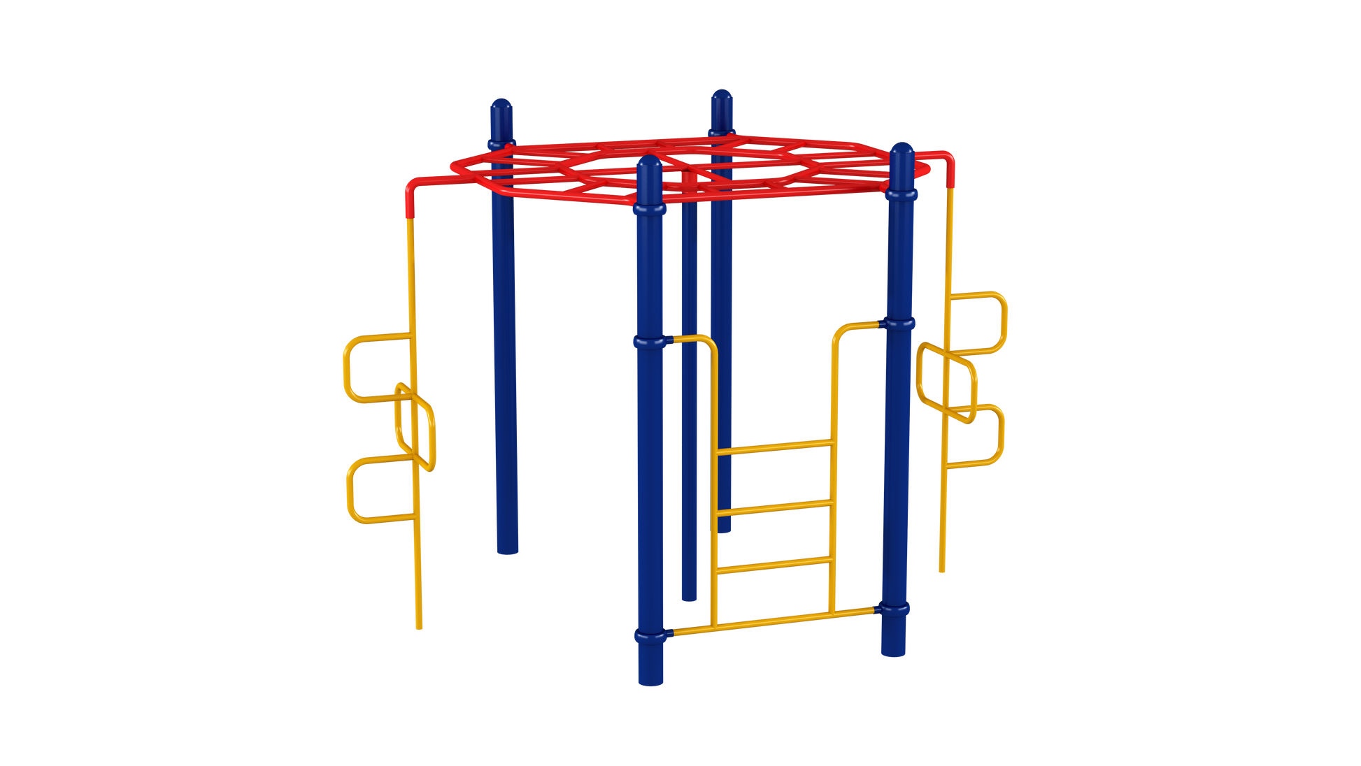Constructed with a durable, weather-resistant metal framework, the Spider Web is built for long-term outdoor performance and high-usage areas. The overhead web-style bars support upper-body development, while the integrated ladders and side climbing elements ensure safe and easy access. With its vibrant design, robust construction, and high play value, the OK PLAY Spider Web is well suited for schools, parks, playgrounds, and community spaces focused on active and fitness-oriented play.
