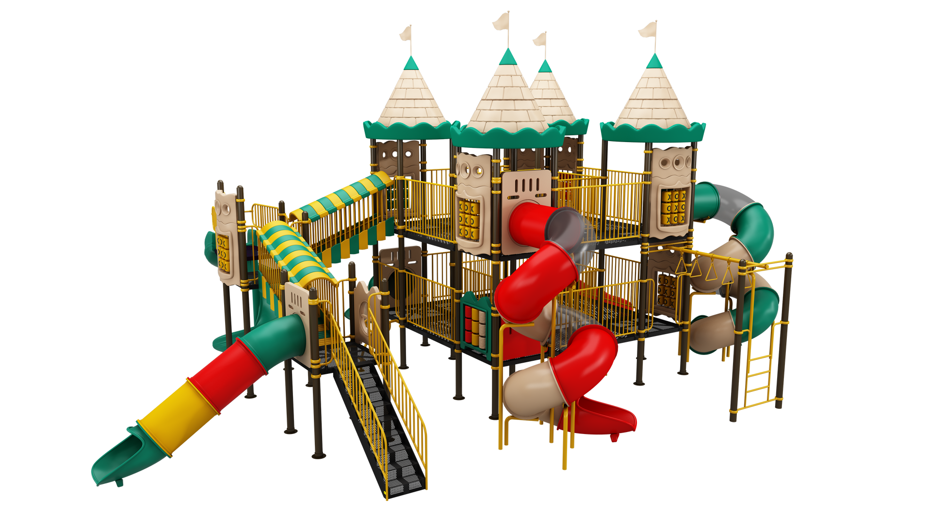 The Castle Series is offered across multiple product variants, each featuring a unique combination of play elements. Depending on the model, structures may include slides, climbers, crawl tunnels, interactive panels, bridges, guardrail platforms, and elevated play decks. The modular design approach allows flexibility in selecting the appropriate configuration based on play value, spatial planning, and age-group requirements, while maintaining a consistent castle-themed aesthetic.