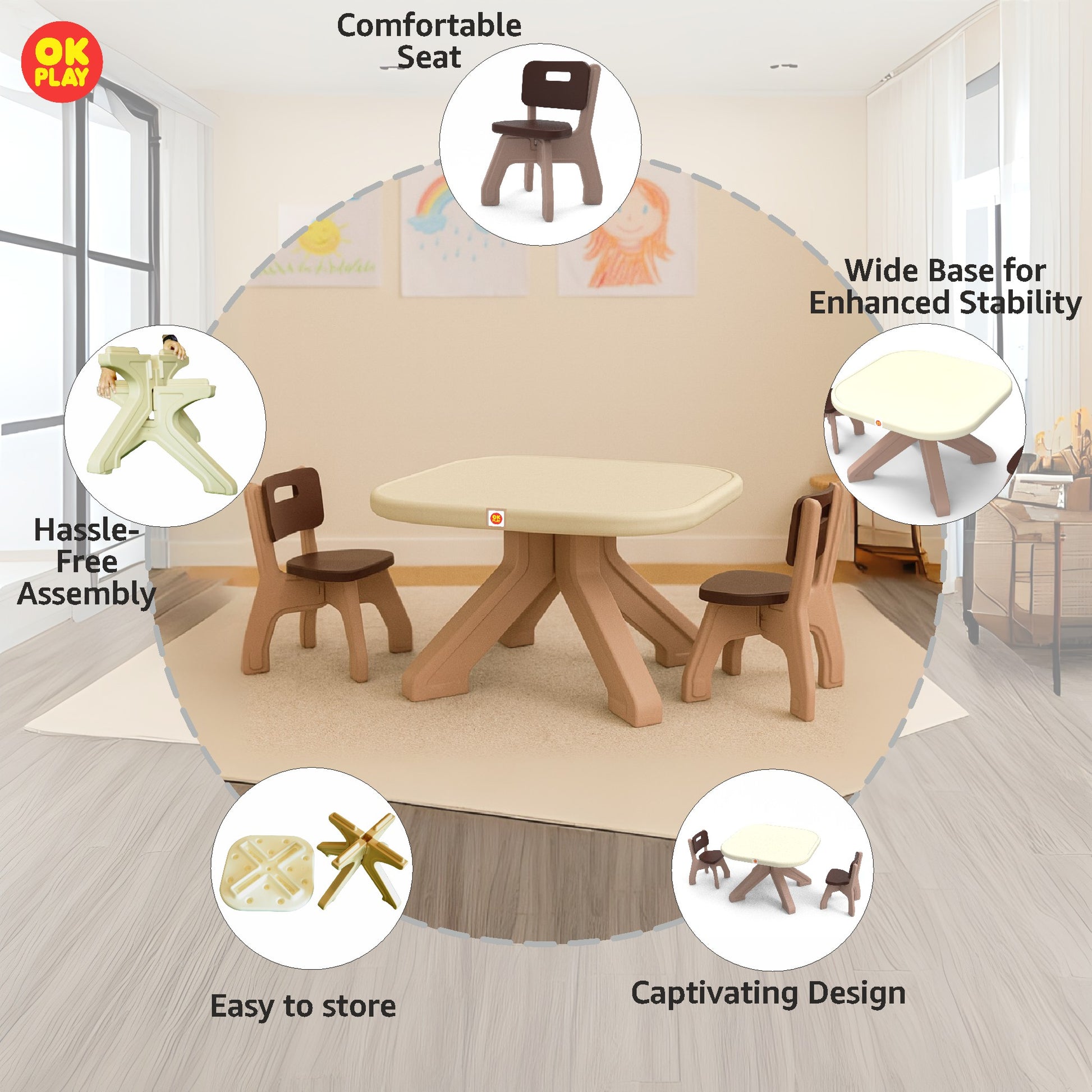 OK PLAY Table & Chair Set for Kids | Perfect for Home, School & Playground | Foldable | Indoor Outdoor | Comfortable Sitting | for Perfect Posture | Play & Learning | Perfect Gift | Medium