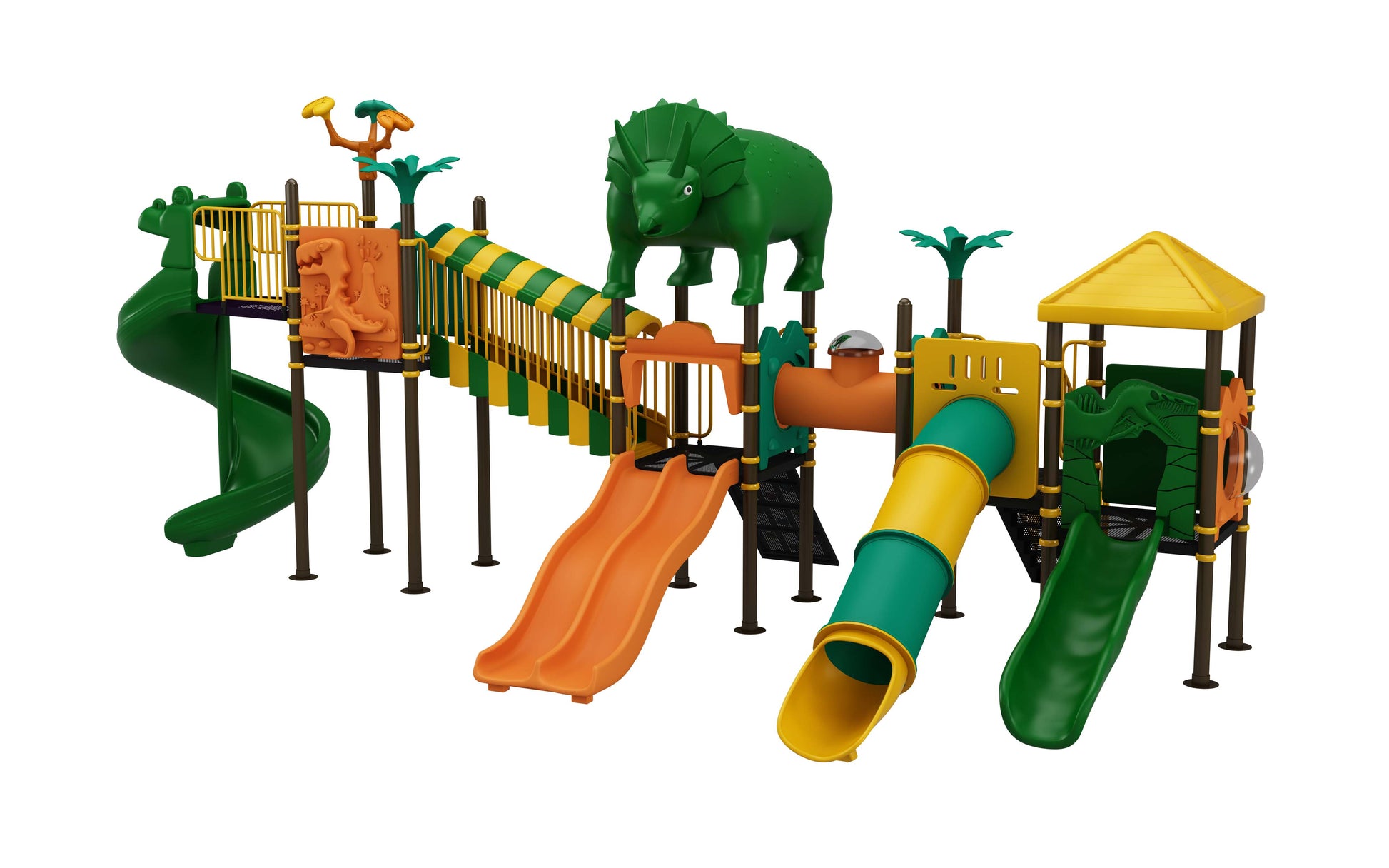 The Dinosaur Series is available in multiple variants, including Rox, Archie, Cirano, Raptar, Theco, Todd, Brute, Critter, Beast, Barney, Bonehead, Slego, Tricero, Arlo, and Craig. Each variant offers a unique configuration with different combinations of play elements such as slides, climbers, bridges, platforms, and interactive panels. Some models focus on a single play feature, while others integrate multiple elements, allowing flexibility based on space, age group, and play intensity requirements.